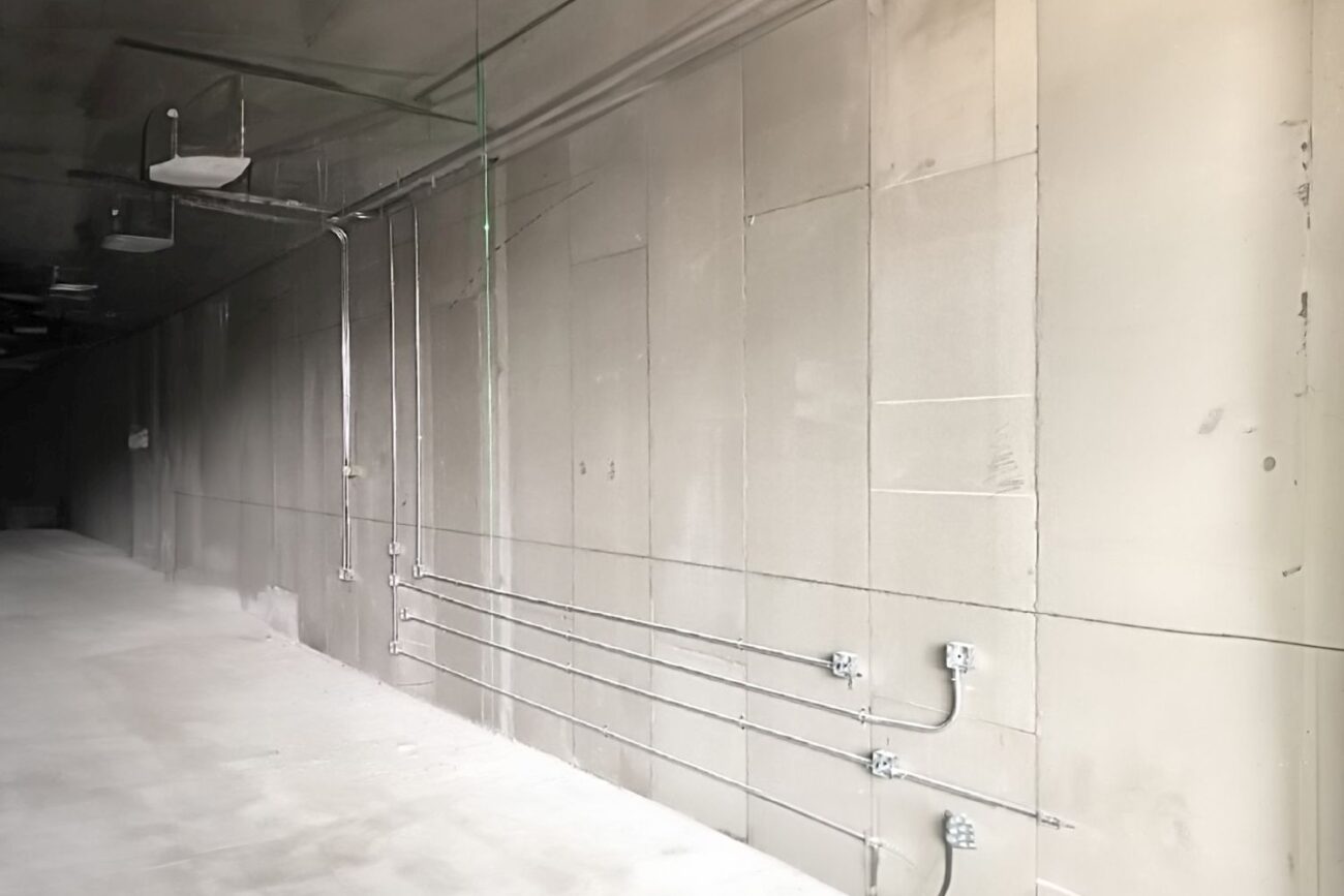 Des Weiteren ist es mit WakuStone im Akustikbau hervorragend und effektiv möglich, die Schallemission in Produktionshallen reduzieren, was an Toren und Durchgängen mit „Schallfallen“ besonders wichtig ist, wenn es Auflagen zu erfüllen gilt. Das führt automatisch zum nächsten Punkt, weil mit der Verwendung von WakuStone keine zusätzlichen Brandlasten eingebaut werden.