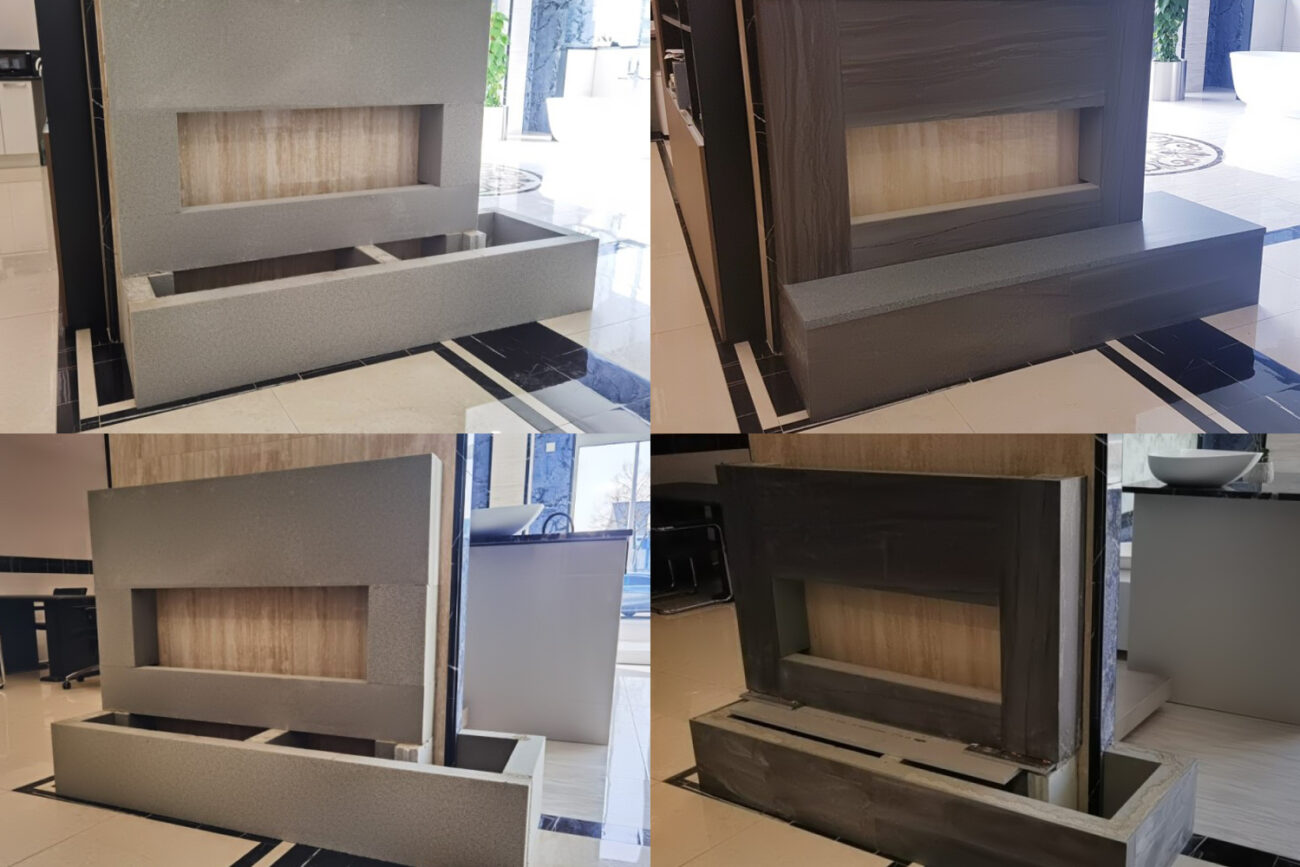 Mit diesem homogenen Material ist es jetzt erstmalig wieder möglich, dass eine Gestaltung nicht nur außen, sondern auch wieder nach innen in der gleichen sehr hochwertigen Qualität umsetzbar ist. Auch Anfragen für große 3D-Elemente, wie Prachtsäulen und ähnliche Objekte, sind damit ebenso für die Produktion willkommen, wie man auf den Projektfotos sehen kann. Ein echtes Aha-Erlebnis sind zum Beispiel auch die massiven Fensterbänke. Hier werden automatisch alle Profilformen im rechten Winkel zur Fassade gefräst, oder in einem Winkel, der vorgegeben wird.